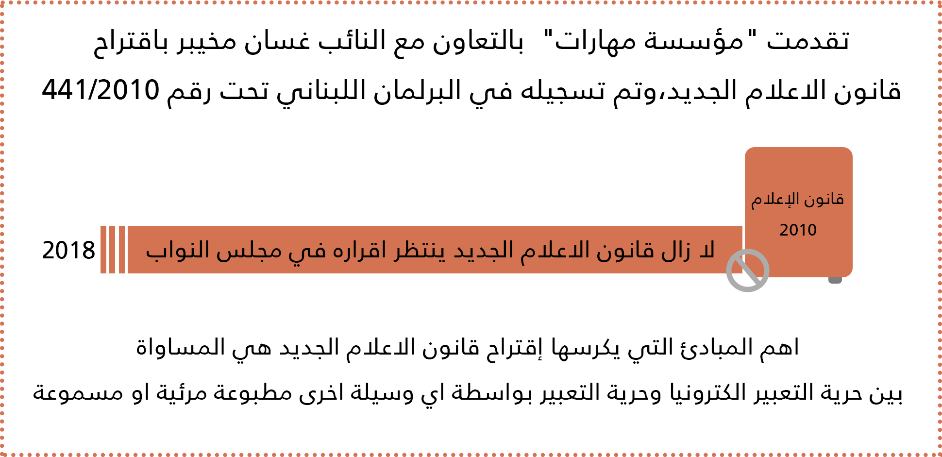 يذكر ان مهارات والنائب غسان مخيبر بعثا رسالة مشتركة الى لجنة الاعلام والاتصالات تتضمن بعض الاعتراضات على التعديلات التي اقرتها اللجنة ومنها ما يتعلق بتعريف الصحافي ووسائل الاعلام المرئي والمسموع، والنشرة الاعلامية الاكترونية المهنية، والتراخيص الممنوحة لوسائل الاعلام المرئي والمسموع، والرقابة، اضافة الى احكام جرائم النشر.