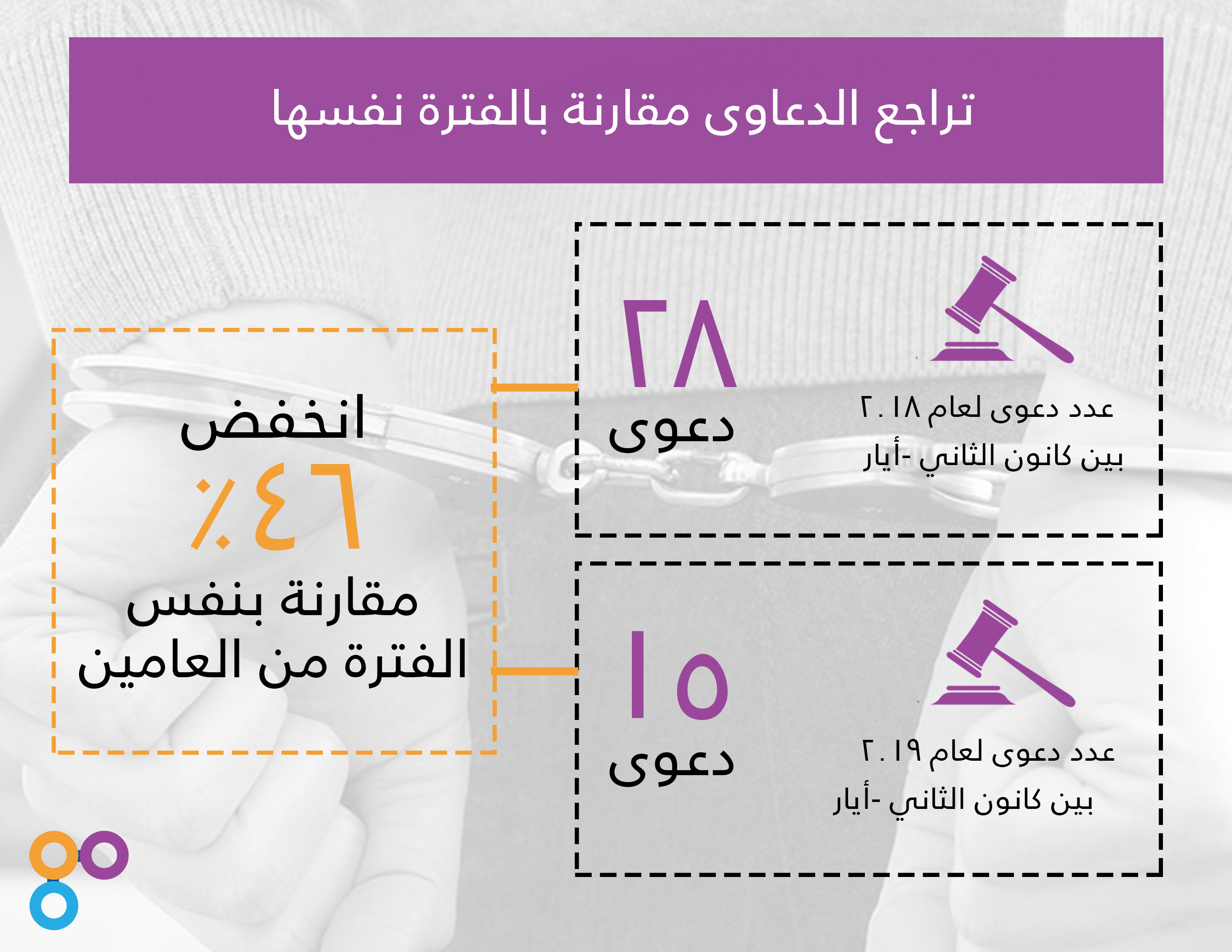 بالقسم الاول من العام نفسه والتي بلغت 28 دعوى