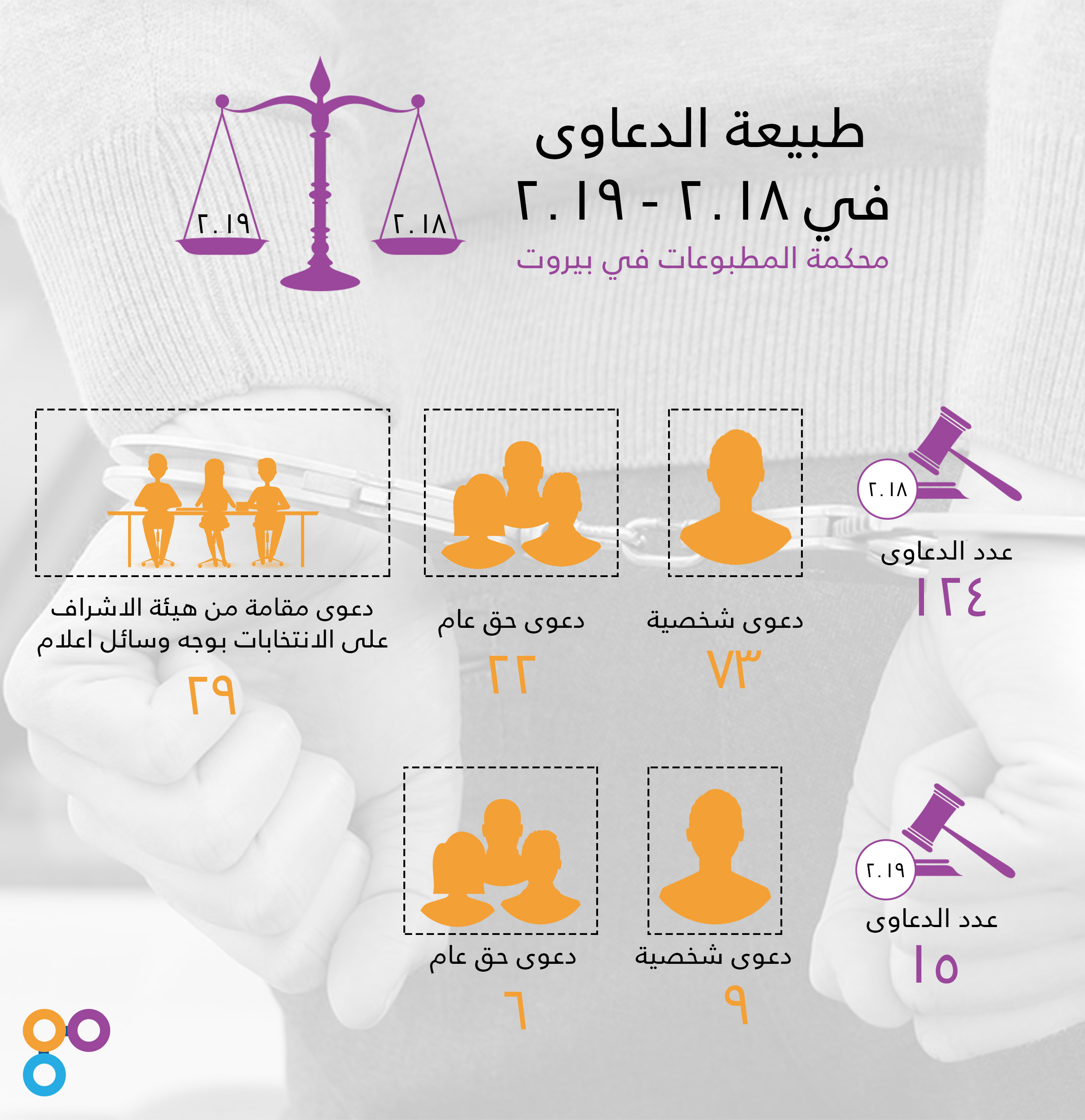 مقارنة دعاوى محكمة المطبوعات في يروت 2018 – 2019