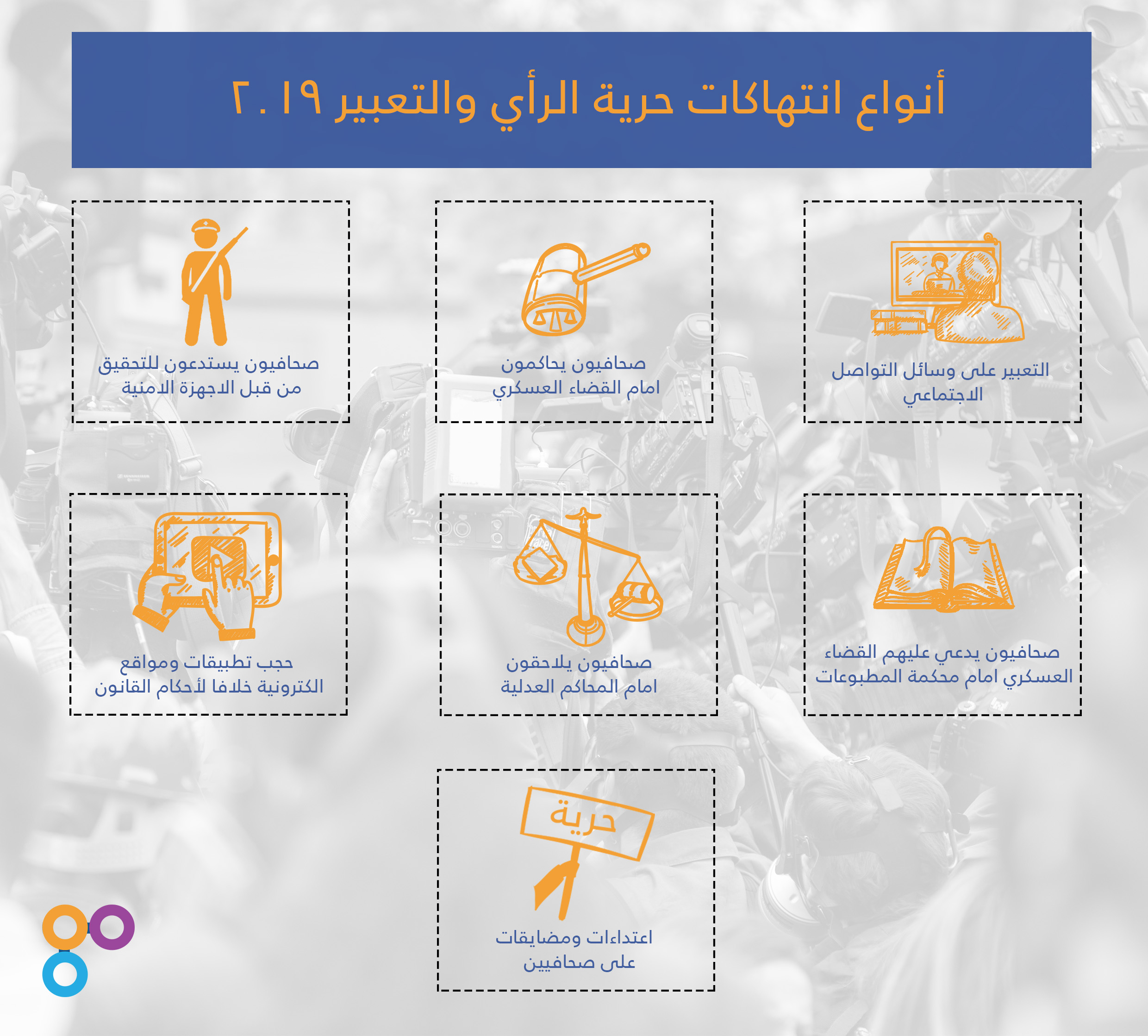 لا يزال المشهد اللبناني يسجل تراجعا في حرية الناشطين والمواطنين في التعبير عن آرائهم الخاصة لاسيما عبر مواقع التواصل الاجتماعي كما سجلت الوقائع والحالات الموثقة ما بين النصف الثاني من العام 2018 وبداية العام 2019. تمحورت هذه الحالات حول قضايا تتعلق بنقد الاشخاص العامين وأداء المؤسسات والهيئات المولجة تطبيق القانون وحماية الحقوق والحريات او ابداء آراء نقدية ساخرة منها أو من قضايا تتتعلق بالأديان. وتتذرع السلطة في حملاتها القمعية ضد ابداء الراي والتعبير عنه بنصوص تتعلق بالمس بهيبة المؤسسات العامة او تعكير السلام العام او اثارة النعرات الدينية او تعريض سلامة الدولة او علاقات لبنان الخارجية للمخاطر او تحقير الموظفين العامين ونصوص اخرى تتعلق بالتجديف والاساءة الى الاديان والممارسات العبادية . كما تم استدعاء صحافيين امام المحكمة العسكرية والتحقيق مع بعضهم امام السلطات الامنية المختلفة. هذا فضلا عن صدور احكام بحق صحافيين اثر ممارسة مهامهم الاستقصائية او ابداء آرائهم وعدنا نشهد أحكاما تقضي بعقوبة الحبس. وما زالت السلطات القضائية الممثلة بالنيابات العامة تعتمد اجراءات لا تتوافق مع مبادئ حماية حقوق الافراد في التعبير وتداول المعلومات وحماية بياناتهم الخاصة